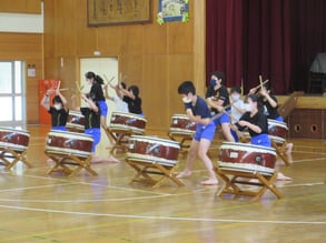 明日は授業参観日です。音楽部はそこで太鼓の演奏を披露します。今日は、明日聞けない1年生から4年生までの子ども達に、太鼓の演奏を披露してくれました。音楽部は毎朝早く登校し、明日の発表に向けて、練習を重ねてきました。太鼓は4年生の時にやりましたが、もう一度基礎から練習し直しました。毎日の積み重ねのおかげで、おなかに響くような音が出るようになり、音も揃うようになりました。