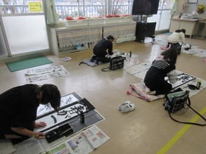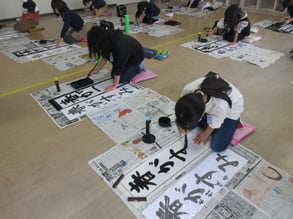 今日は4年生が書き初めの練習会を行いました。習字の先生に一文字ずつ書き方を教わり、丁寧に練習をしました。今年の4年生は「春がすみ」が課題です。どの文字も、バランスをとるもの、筆使いも難しいのですが、先生の話をよく聞き、ポイントを押さえて書いていました。書くのは今日が初めてなので、これからたくさん練習して納得の一枚を仕上げていって欲しいですね。