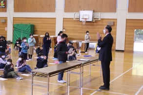 終業式では、作文発表、生徒指導の先生からのお話、校長先生のお話がありました。作文発表では、1年生、3年生、5年生の代表児童が、それぞれ2学期に頑張ったことを発表しました。生徒指導の担当の先生方からは、楽しく安全に冬休みを過ごすために、3つの約束について話がありました。一つ目は、お金の使い方、2つめはインターネットやゲームについて、3つ目は火のとり扱いについてです。校長先生からも3つの約束を守って、1月7日に元気に登校してきて欲しいという話がありました。